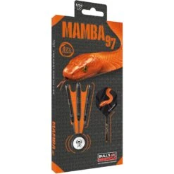 BULL’S Mamba 97 Steel Tip Darts – M5 – 97% Tungsten. Features: 97% Tungsten Barrels, 1 Set of Bull’s Flights, 1 Set of Bull’s Shafts.