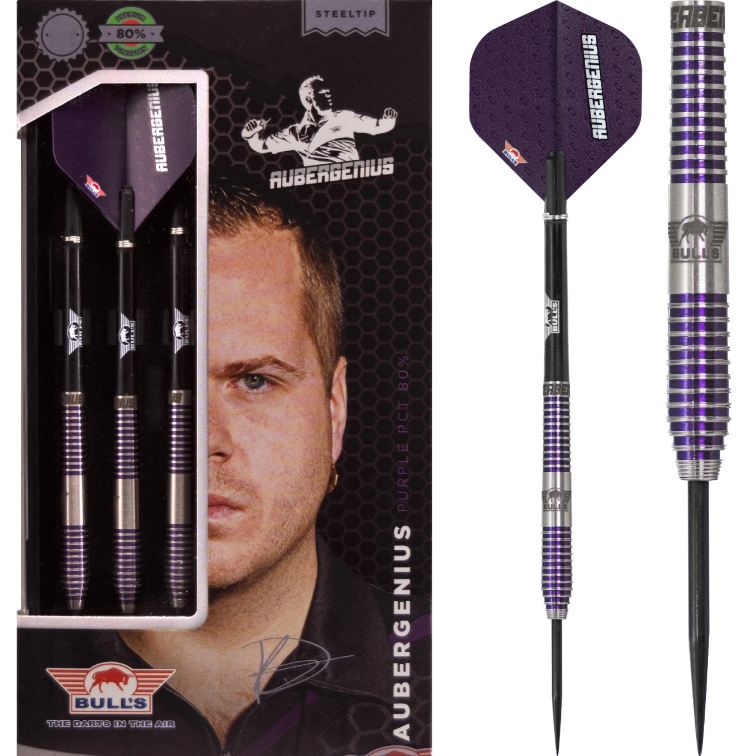 Bulls Dirk van Duijvenbode Darts – Steel Tip – Aubergenius 80. Features: 80% Tungsten Barrels, Bulls Shafts, Bulls Flights.