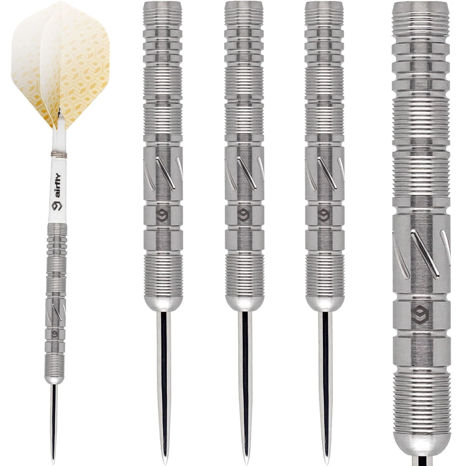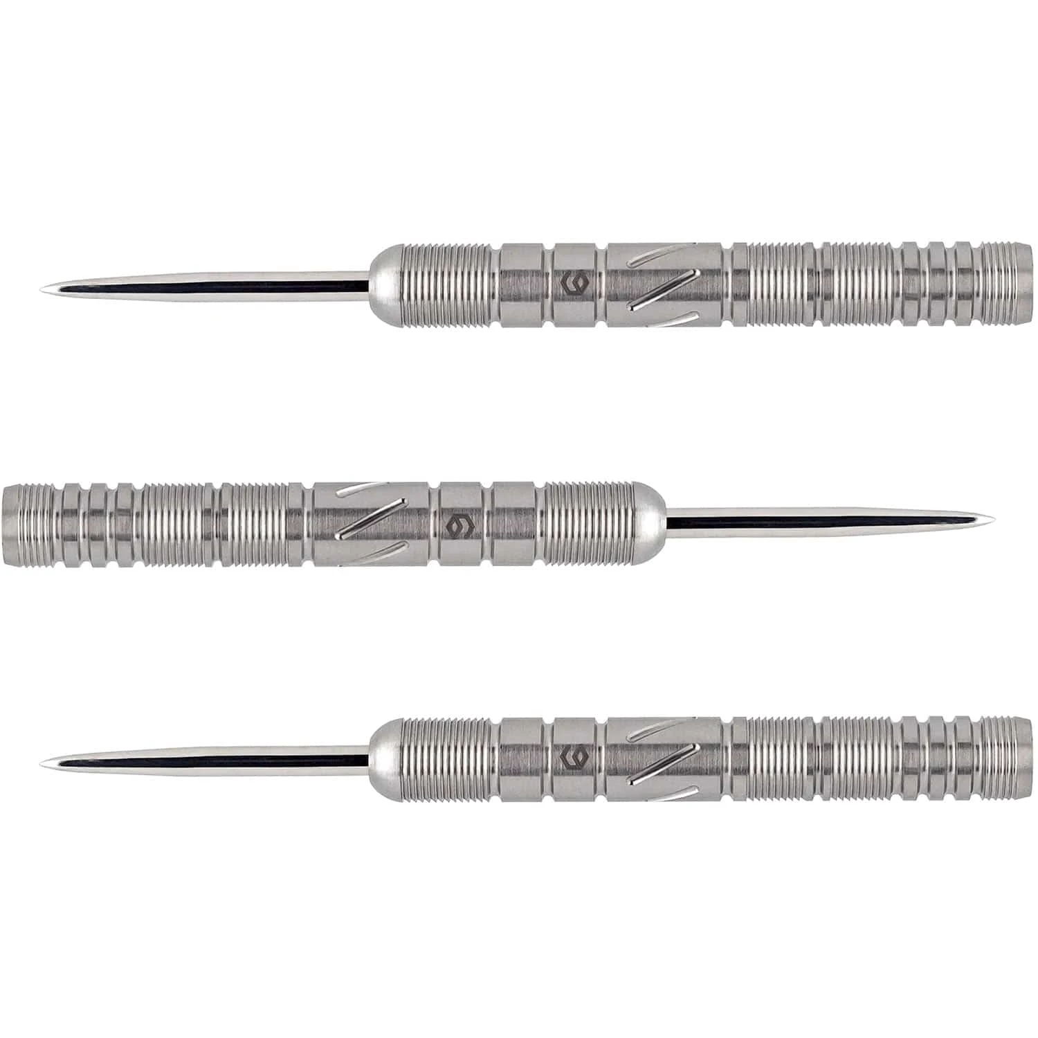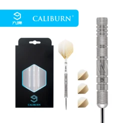 Caliburn Crane Darts – Soft Tip – 90% – Natural – 20g. This Caliburn Crane Soft Tip Dart features a 90% straight tungsten barrel, with a ringed section along the full length of the dart. The natural finish on the barrel enhances the visual appeal of the dart. They come complete with Caliburn Dart Shafts and Flights.