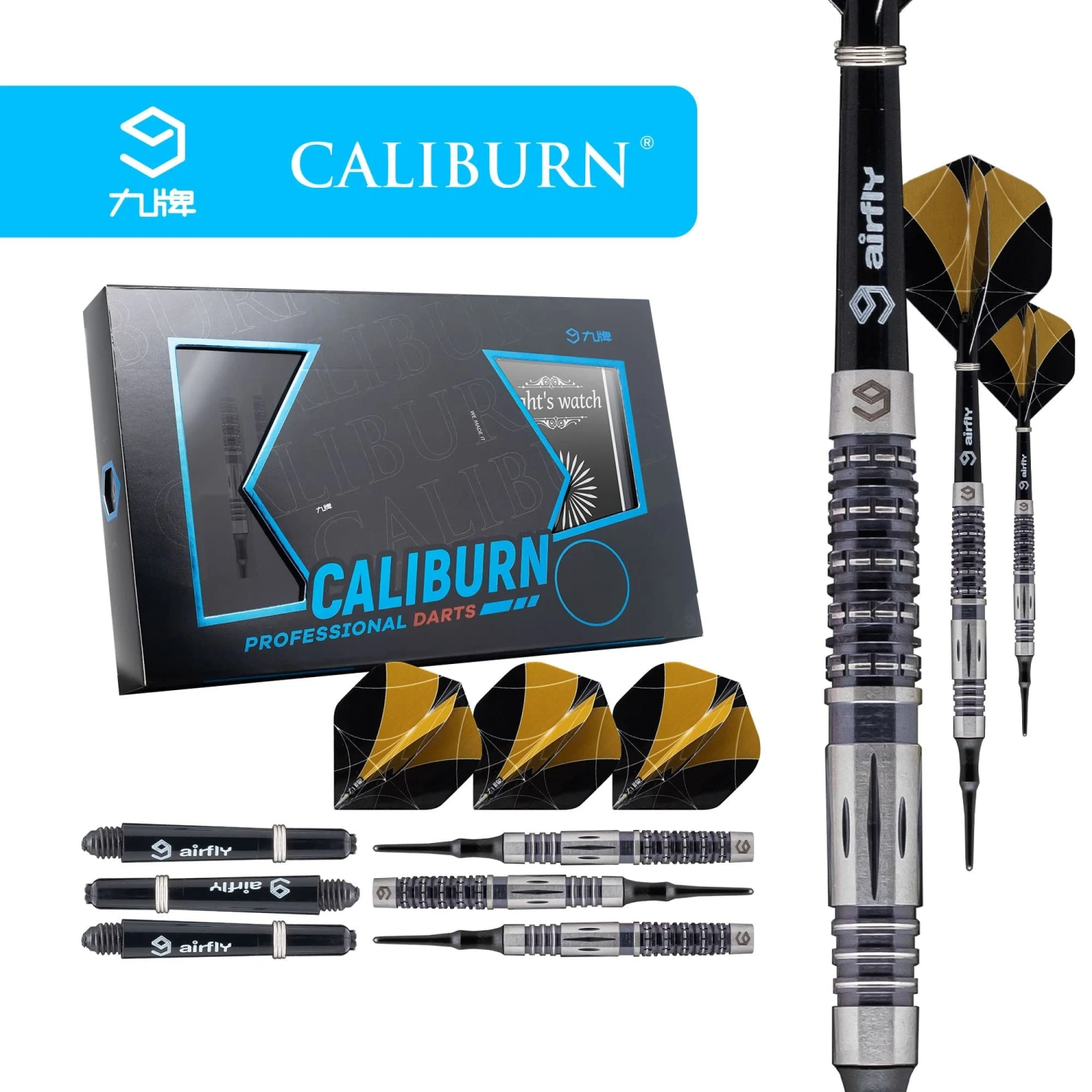 Caliburn Nights Watch Darts – Soft Tip – 95% – N1 – Black