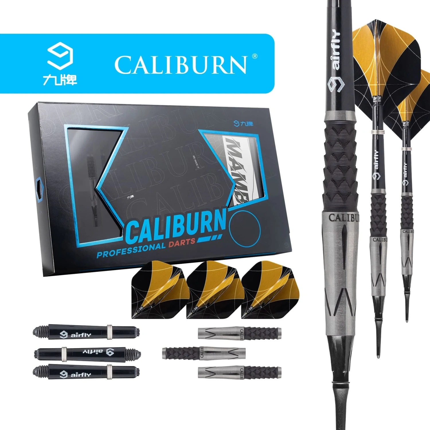 Caliburn Player Darts – Soft Tip – 95% – Black Titanium – Mamba