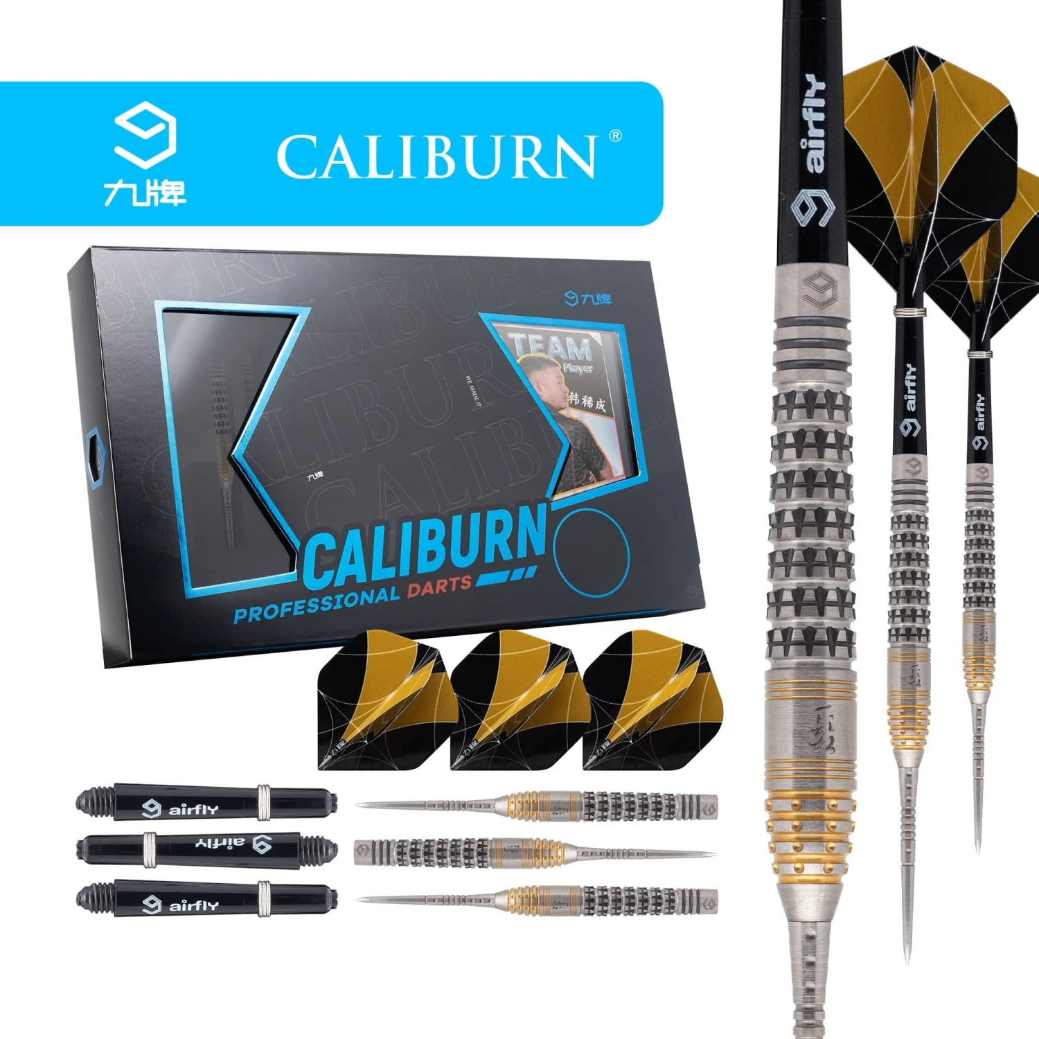 Caliburn Player Darts – Steel Tip – 90% – Silver & Gold – Han