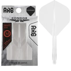The Condor AXE dart flights in clear are designed to provide improved accuracy and stability in-flight. These medium clear standard shape flights are made from a durable polymer material and are available in 3 lengths. These medium clear standard shape flights are measured from the ridge of the screw to the joint/link between the clear standard shape flight and the medium clear stem. Shaft length: 27.5mm