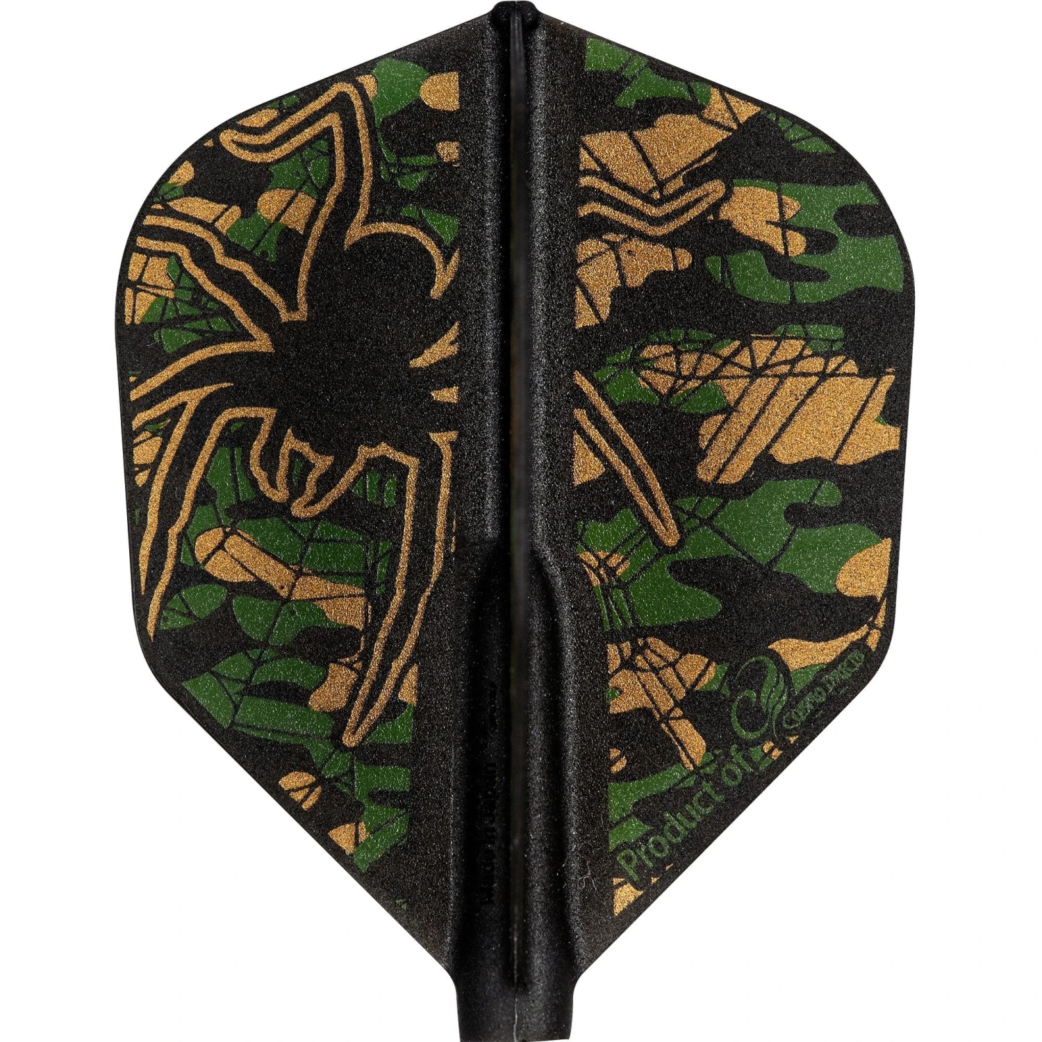 Cosmo Fit Flight Darin Young 3 Shape dart flights. The Fit Flight is the most innovative Flight and Shaft System. Designed with Darin Young, these small standard shape flights have a spider design on green camouflage flights. Only to be used with the Cosmo Fit Flight Shafts.