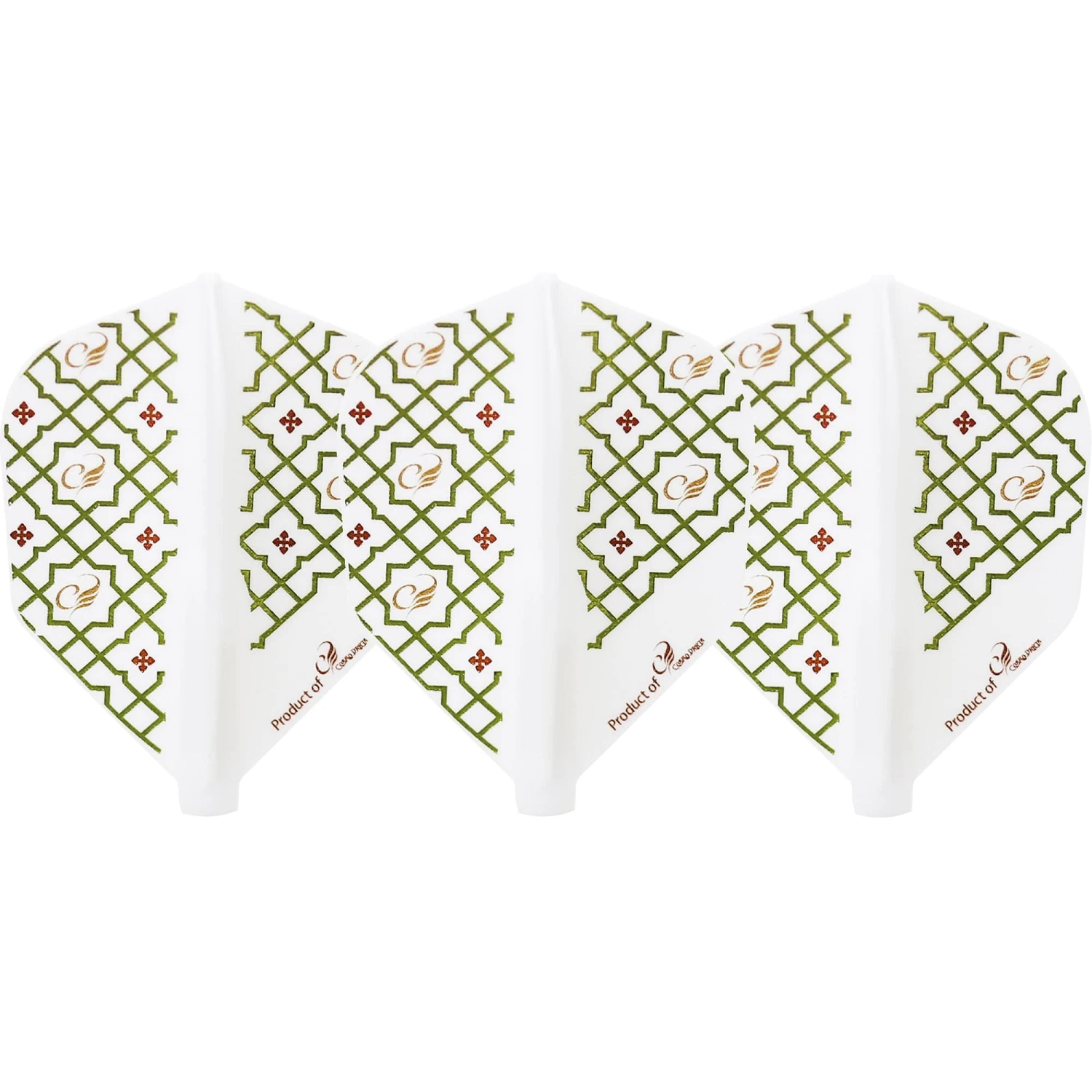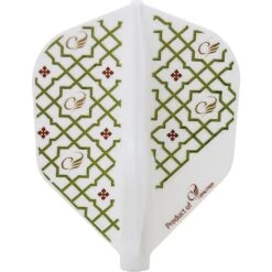 Cosmo Fit Flight Renaissance Green Small Standard shape dart flights. The Fit Flight is the most innovative Flight and Shaft System. These small standard shape Renaissance Green flights have a diamond design on a white background. To be used with the Cosmo Fit Flight Shafts.