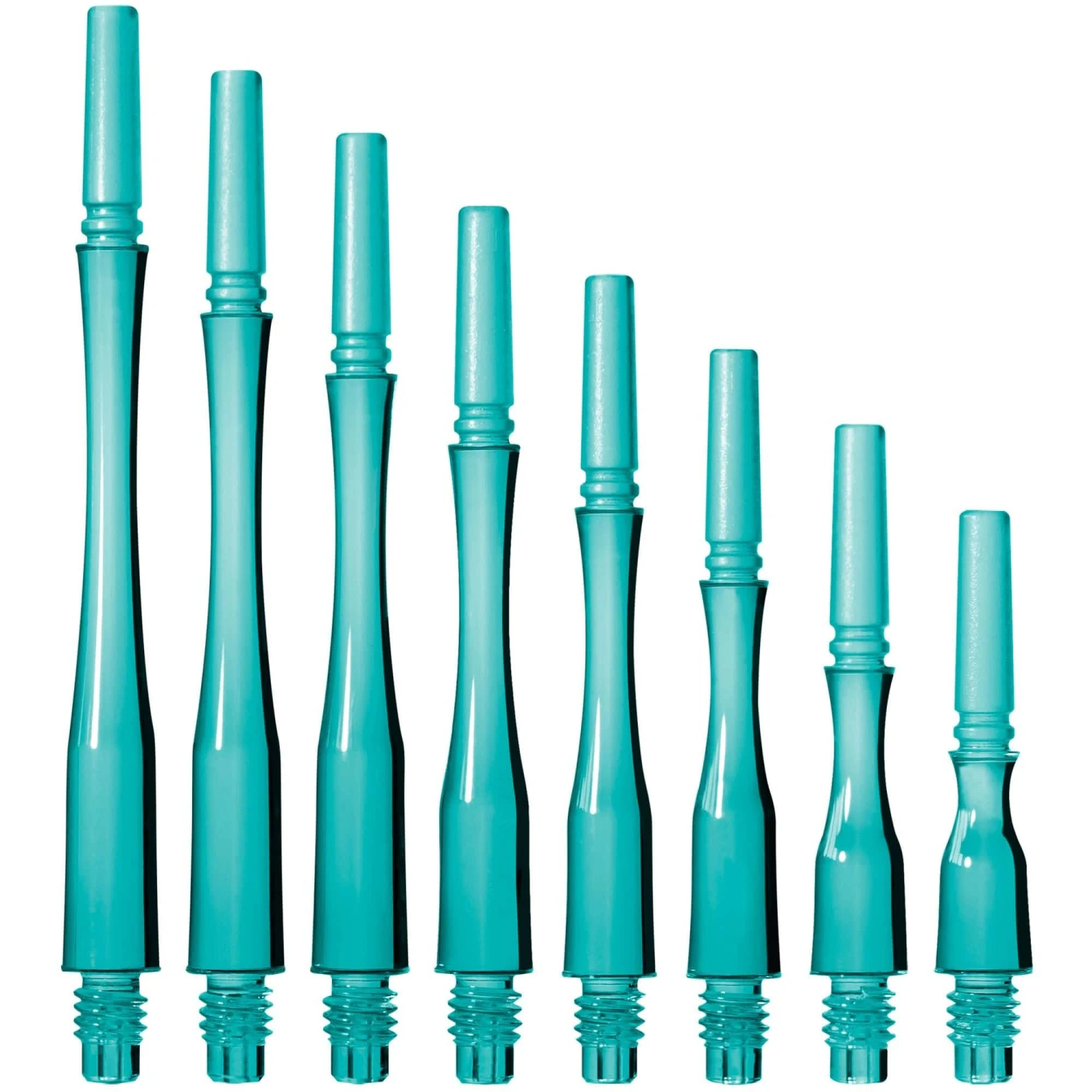 Cosmo Fit Shaft Gear in clear blue are made from a polycarbonate resin to strengthen the stem at both the screw thread and the base of the top. These size 7 locked clear blue stems have a flat top to lock the flight in place and the hybrid stem profile is concave towards the top of the stem, with a wider base where it screws into the barrel. The given length of these size 7 clear blue stems is what is visible when the dart is fully assembled. Shaft length: 38mm