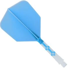 Cuesoul Rost T19 Integrated white dart shaft and big wing sky blue flights. This fully moulded system screws into the barrel, just as with a standard stem. The sky blue moulded flight features a reinforcing rib to help prevent Robin Hooding. The medium white dart shaft is measured for what is visible once the dart is assembled. Shaft length: 28mm