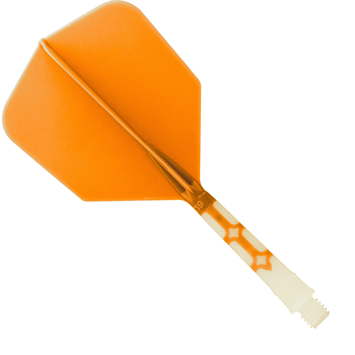 Cuesoul Rost T19 Integrated white dart shaft and big wing orange flights. This fully moulded system screws into the barrel, just as with a standard stem. The orange moulded flight features a reinforcing rib to help prevent Robin Hooding. The long white dart shaft is measured for what is visible once the dart is assembled. Shaft length: 33mm