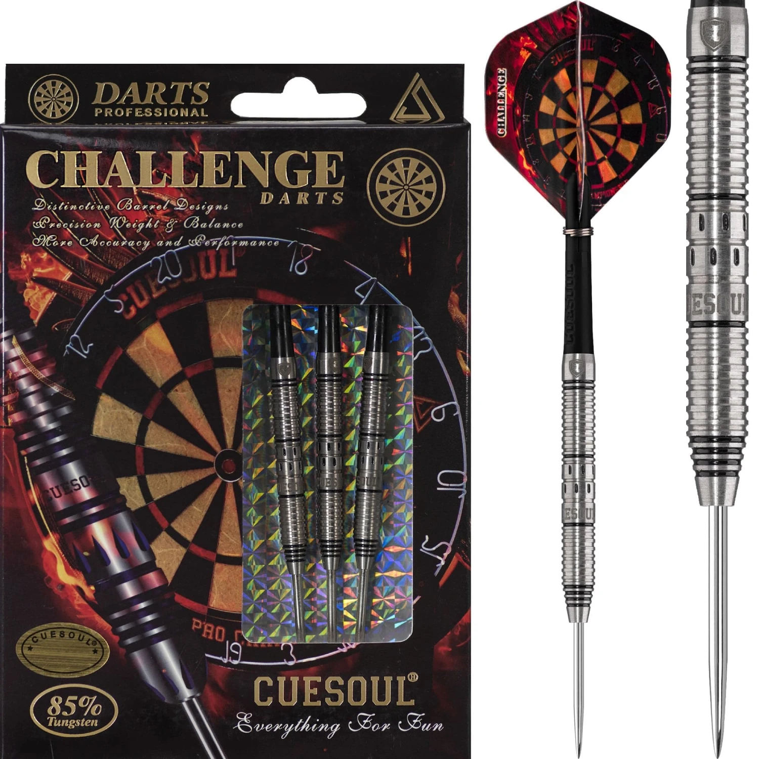 Cuesoul – Steel Tip Tungsten Darts – Challenge – Multi Ring – Black – 24g. Contains 85% Tungsten Barrels, 2 sets of shafts and 2 sets of flights.