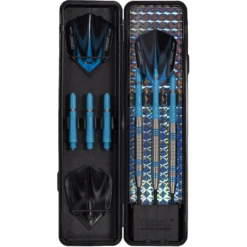 Cuesoul – Steel Tip Tungsten Darts – Glory – Ringed Grip – Blue Grooves – 26g. Contains 85% Tungsten Barrels with Ringed grip, Cuesoul nylon shafts, 1 set of Cuesoul flights and plastic case.