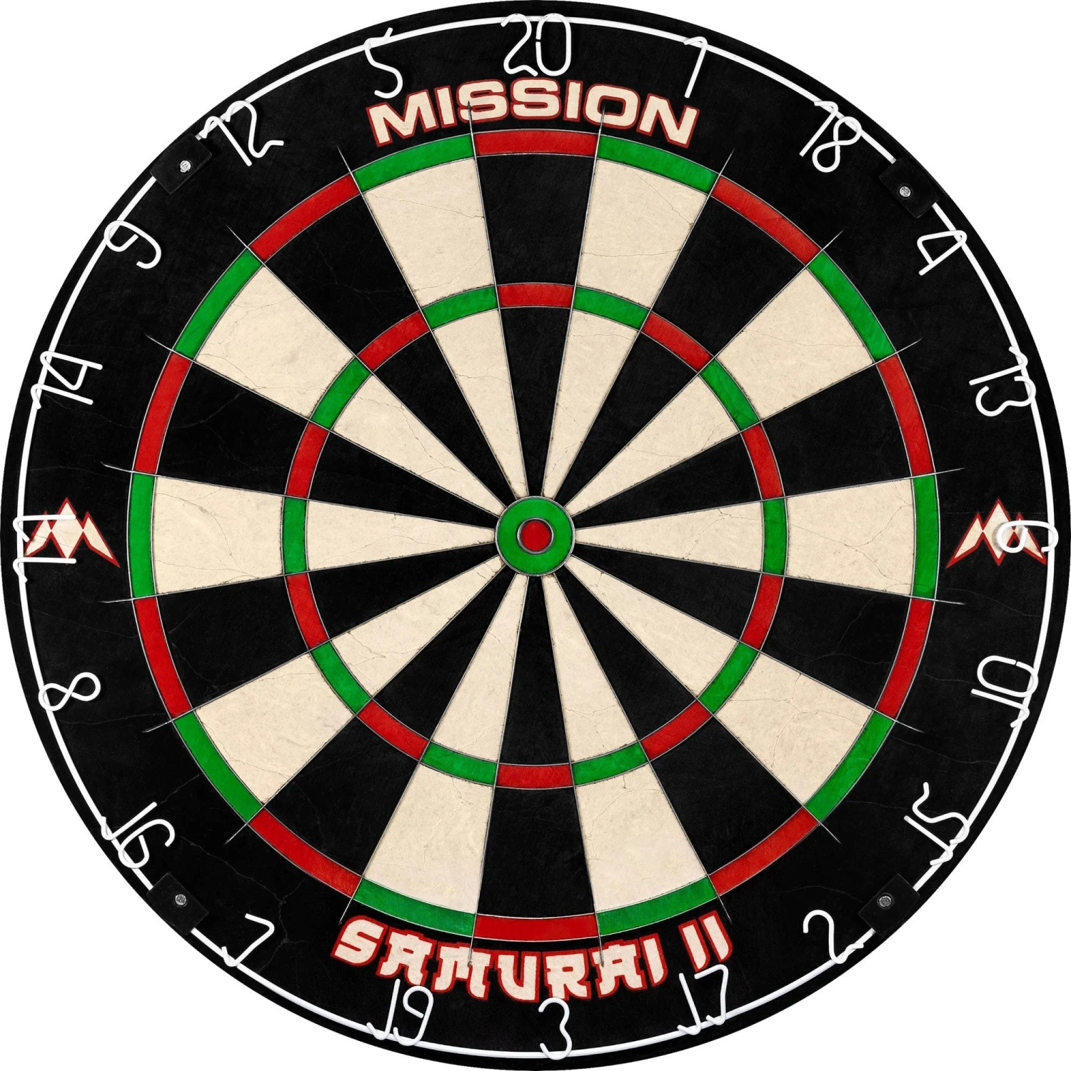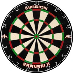 Darts Corner – Bundle Deal. Includes: Designa Black Professional Dartboard Surround. Mission Samurai II Dartboard. Designa Toeline Oche Sticker, 6 Black Steel Tip Darts. Deal 02 – Pro Surround – Samurai II Dartboard – Throwline – 6 Darts Great Value