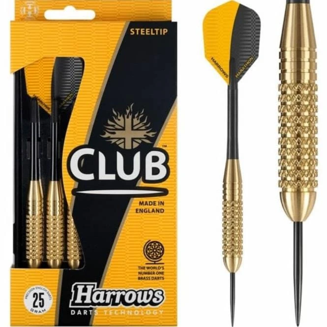 Harrows Club Brass Darts – Steel Tip – Solid Precision Brass – 25g