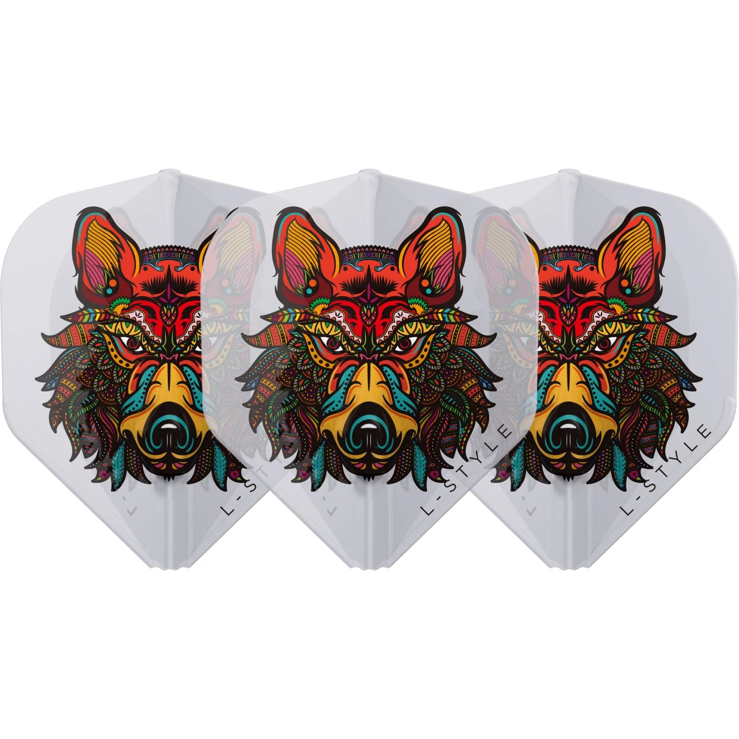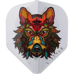 L-Style – EZ L-Flights – Integrated Champagne Ring – L1EZ – Almudena v1 – Clear White. The 1st Edition of the Almudena flights – Standard shaped. A very colourful and detailed picture on the popular EZ fully integrated dart flight. Each pack contains 3 flights.