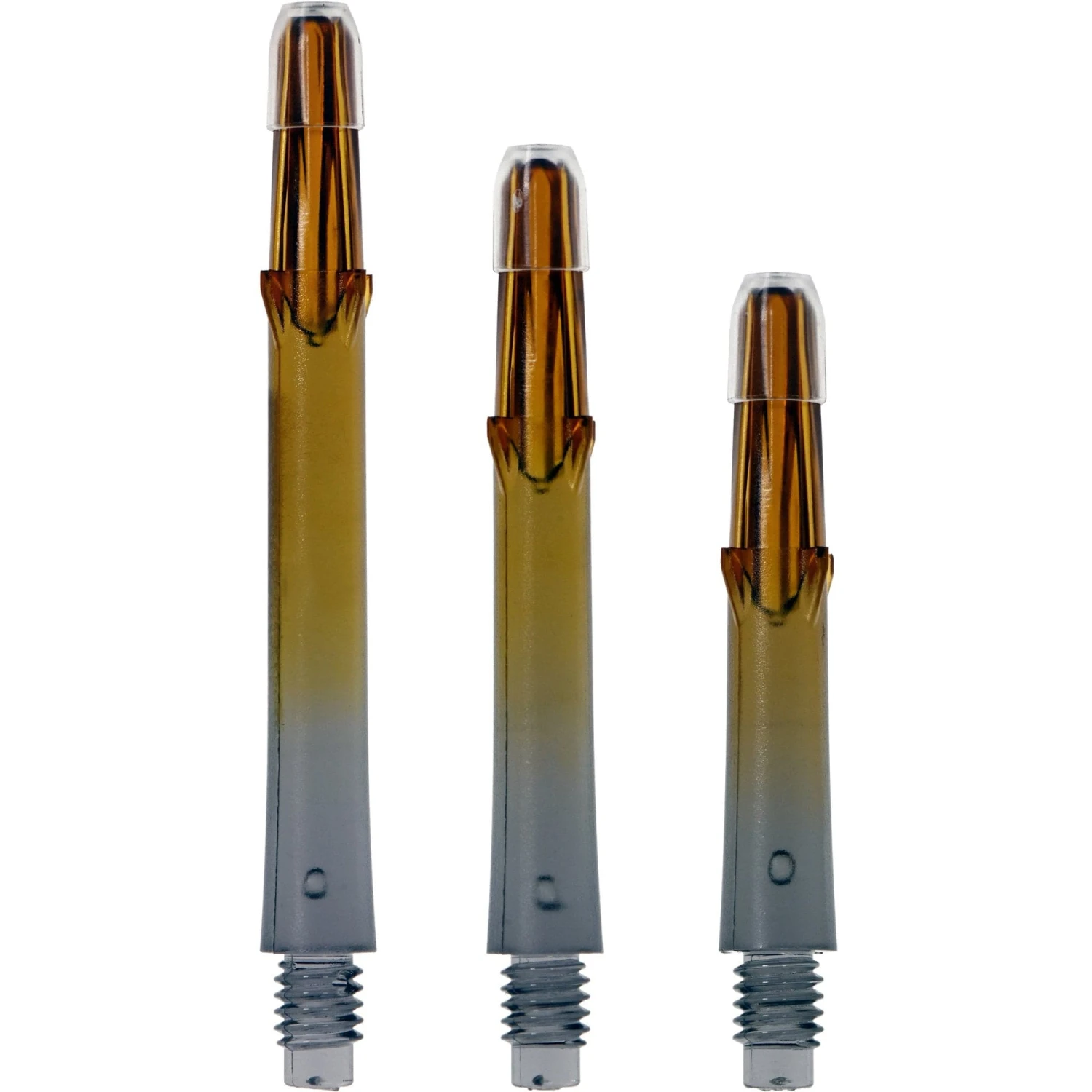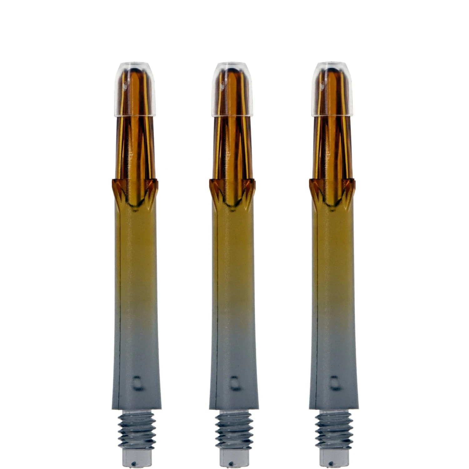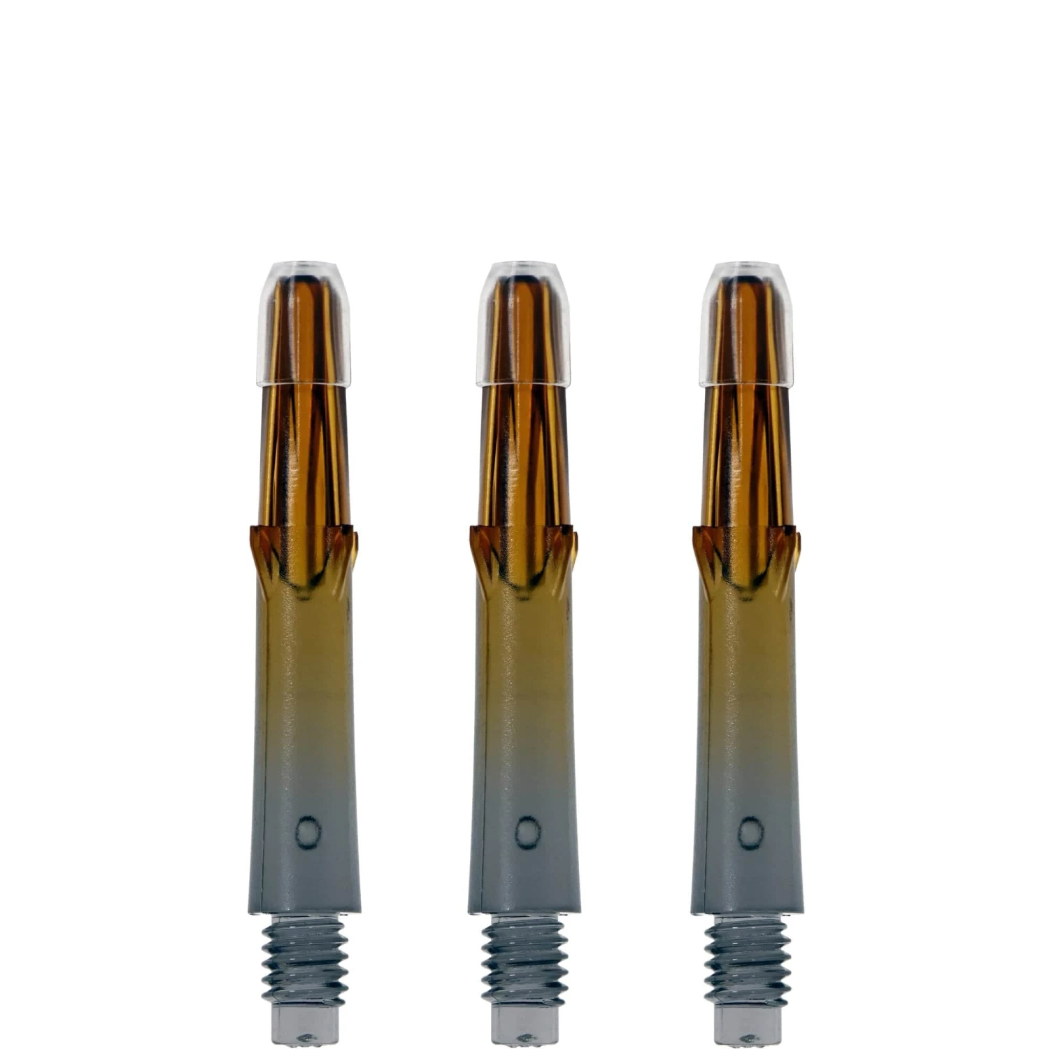 L-Style L-Shafts Gradient – N9 – Natural Nine – Straight – Locked. Japanese material manufacturing technology. Precision moulded, for accurate 2ba thread form. The flights work best when using the Shell Lock Rings or the Champagne Rings as these help lock everything together to create a very strong hold. Measurement is taken from the top of the thread to the bottom of the slits. Each pack contains 3 shafts plus a set of champagne rings. L-Style – L-Shafts Gradient – N9 – Locked Straight – Black & Orange