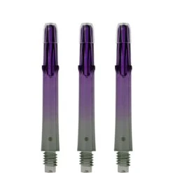 L-Style L-Shafts Gradient – N9 – Natural Nine – Straight – Locked. Japanese material manufacturing technology. Precision moulded, for accurate 2ba thread form. The flights work best when using the Shell Lock Rings or the Champagne Rings as these help lock everything together to create a very strong hold. Measurement is taken from the top of the thread to the bottom of the slits. Each pack contains 3 shafts plus a set of champagne rings. L-Style – L-Shafts Gradient – N9 – Locked Straight – Black & Purple