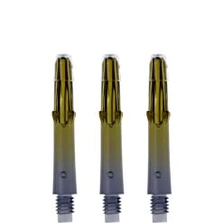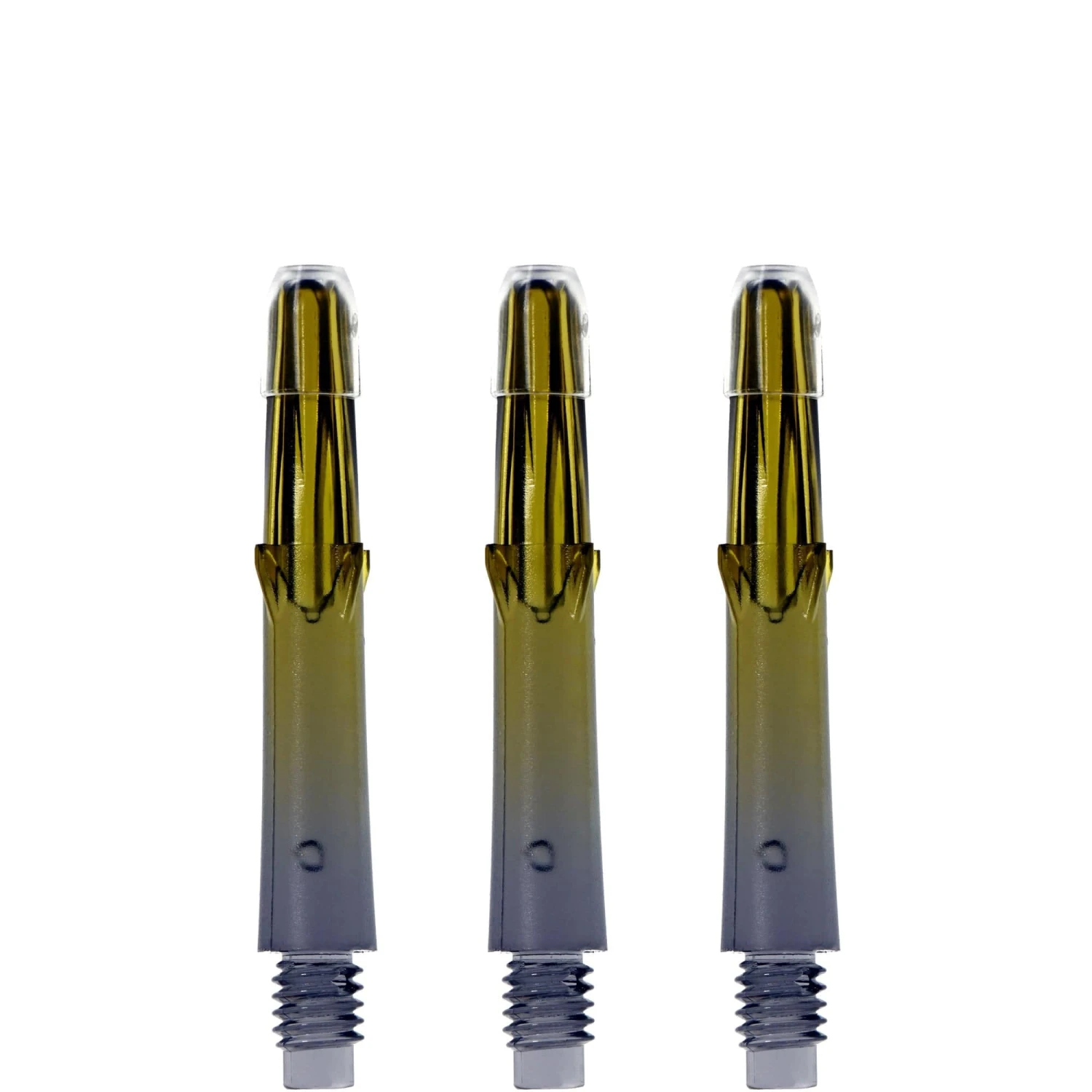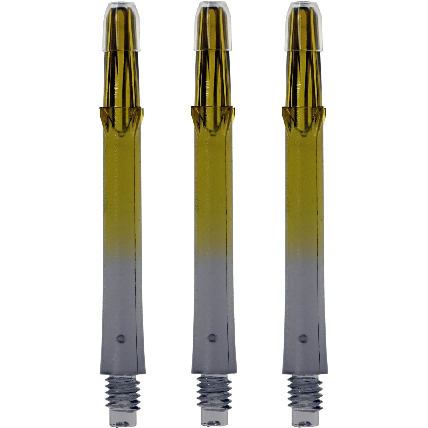 L-Style L-Shafts Gradient – N9 – Natural Nine – Straight – Locked. Japanese material manufacturing technology. Precision moulded, for accurate 2ba thread form. The flights work best when using the Shell Lock Rings or the Champagne Rings as these help lock everything together to create a very strong hold. Measurement is taken from the top of the thread to the bottom of the slits. Each pack contains 3 shafts plus a set of champagne rings. L-Style – L-Shafts Gradient – N9 – Locked Straight – Black & Yellow