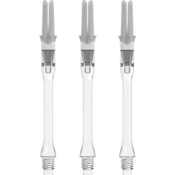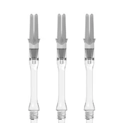 L-Style L-Shafts – Silent Spinning. Japanese material manufacturing technology. Precision moulded, for accurate 2ba thread form. The flights work best when using the Shell Lock Rings or the Champagne Rings as these help lock everything together to create a very strong hold. Measurement is taken from the top of the thread to the bottom of the slits. Each pack contains 3 shafts plus a set of champagne rings. L-Style – L-Shafts – Silent – Slim – Clear
