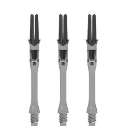 L-Style L-Shafts – Silent Spinning. Japanese material manufacturing technology. Precision moulded, for accurate 2ba thread form. The flights work best when using the Shell Lock Rings or the Champagne Rings as these help lock everything together to create a very strong hold. Measurement is taken from the top of the thread to the bottom of the slits. Each pack contains 3 shafts plus a set of champagne rings. L-Style – L-Shafts – Silent – Slim – Clear Black