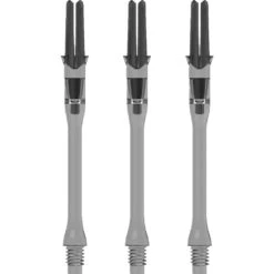 L-Style L-Shafts – Silent Spinning. Japanese material manufacturing technology. Precision moulded, for accurate 2ba thread form. The flights work best when using the Shell Lock Rings or the Champagne Rings as these help lock everything together to create a very strong hold. Measurement is taken from the top of the thread to the bottom of the slits. Each pack contains 3 shafts plus a set of champagne rings.
