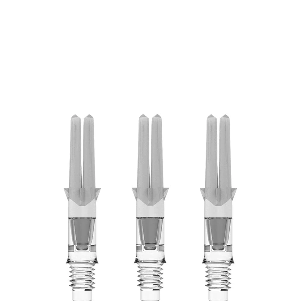 L-Style L-Shafts – Silent Spinning. Japanese material manufacturing technology. Precision moulded, for accurate 2ba thread form. The flights work best when using the Shell Lock Rings or the Champagne Rings as these help lock everything together to create a very strong hold. Measurement is taken from the top of the thread to the bottom of the slits. Each pack contains 3 shafts plus a set of champagne rings.