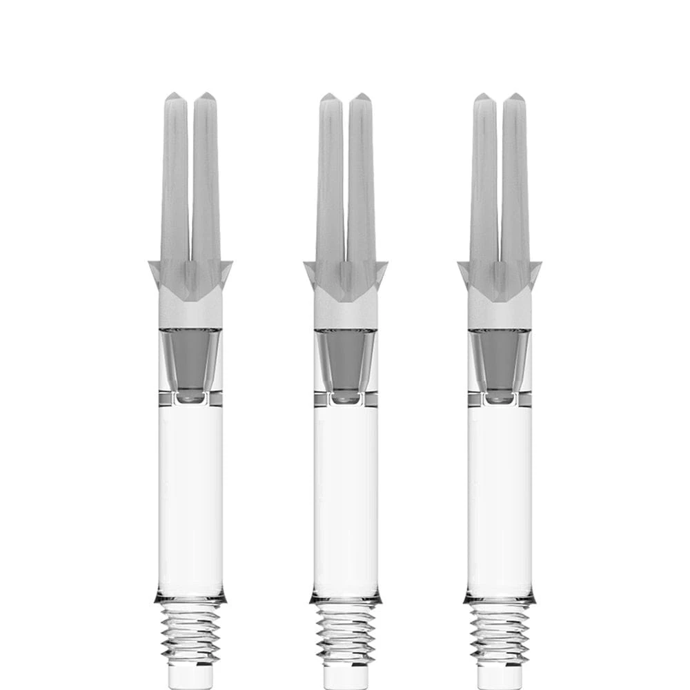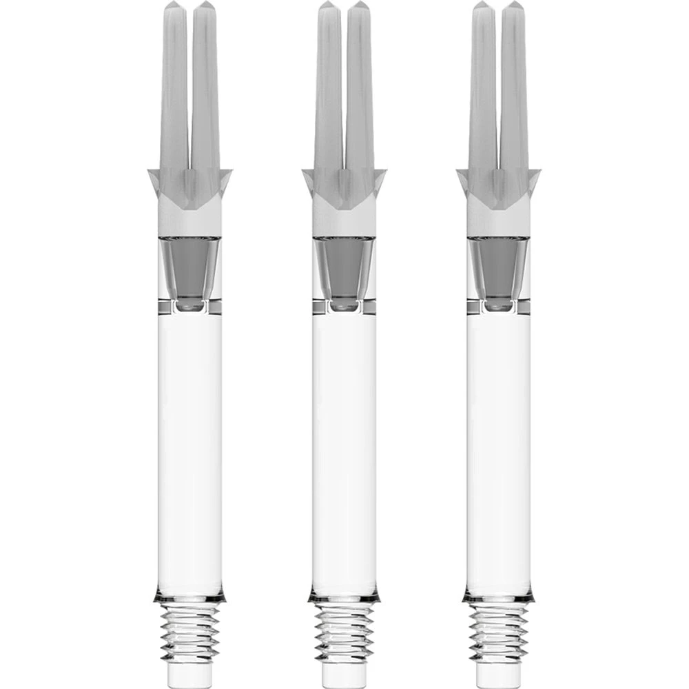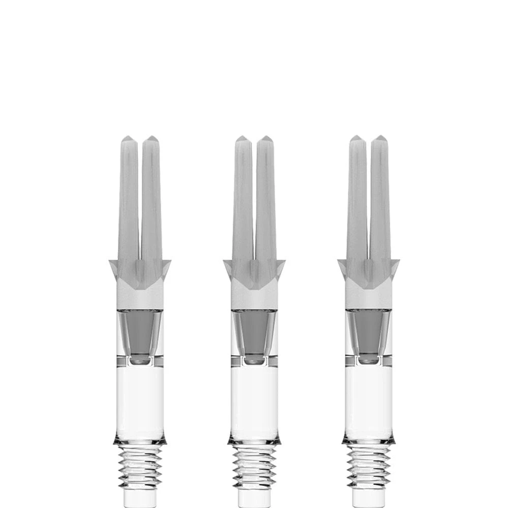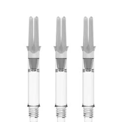 L-Style L-Shafts – Silent Spinning. Japanese material manufacturing technology. Precision moulded, for accurate 2ba thread form. The flights work best when using the Shell Lock Rings or the Champagne Rings as these help lock everything together to create a very strong hold. Measurement is taken from the top of the thread to the bottom of the slits. Each pack contains 3 shafts plus a set of champagne rings. L-Style – L-Shafts – Straight – Silent Spin – Clear