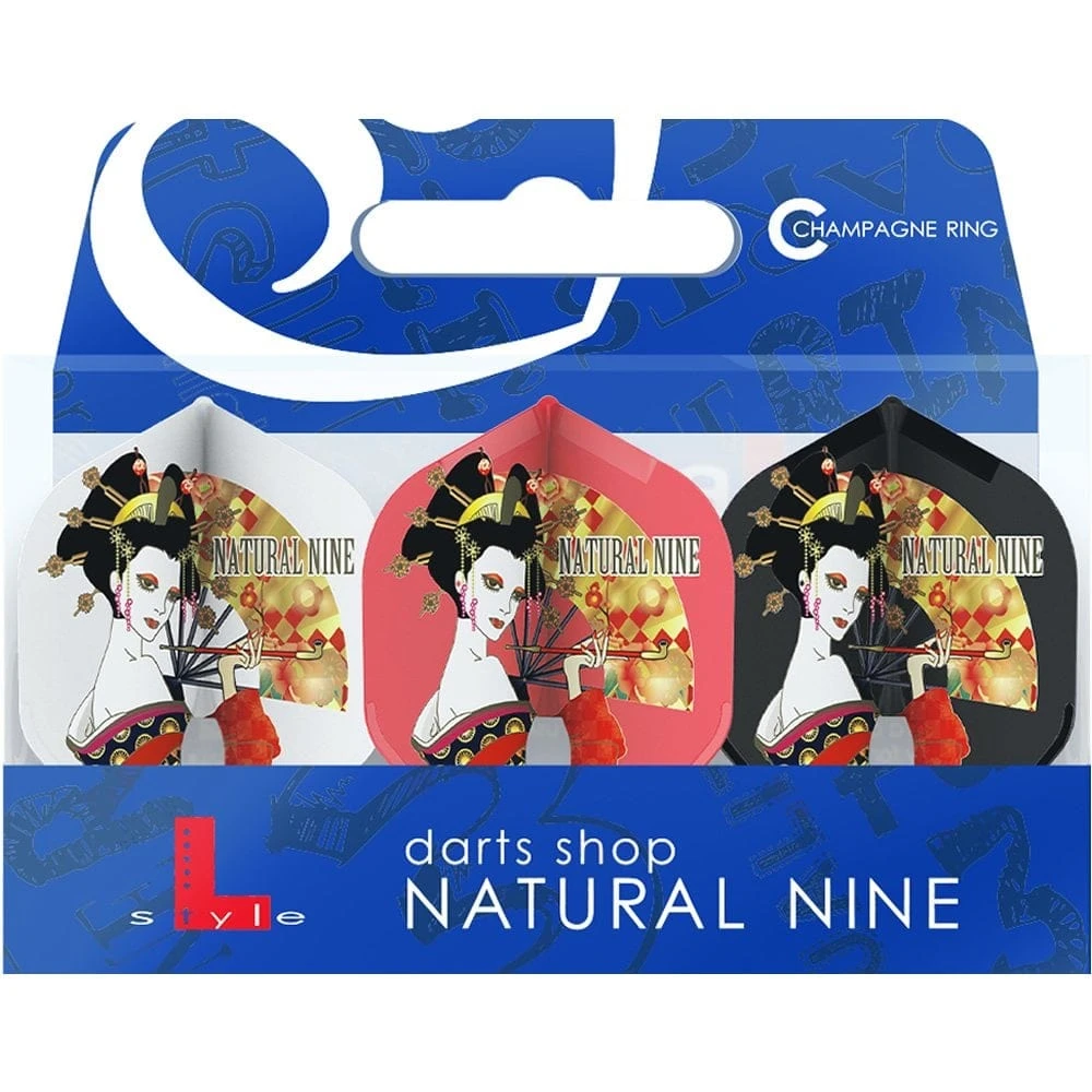 L-Style Champagne Ring L-Flights – N9 – Natural Nine – Beautiful – Mixed. One piece moulded. Strong and rigid for a true flight path. for use with Champagne Rings – available separately. NB Only to be used with nylon style shafts.