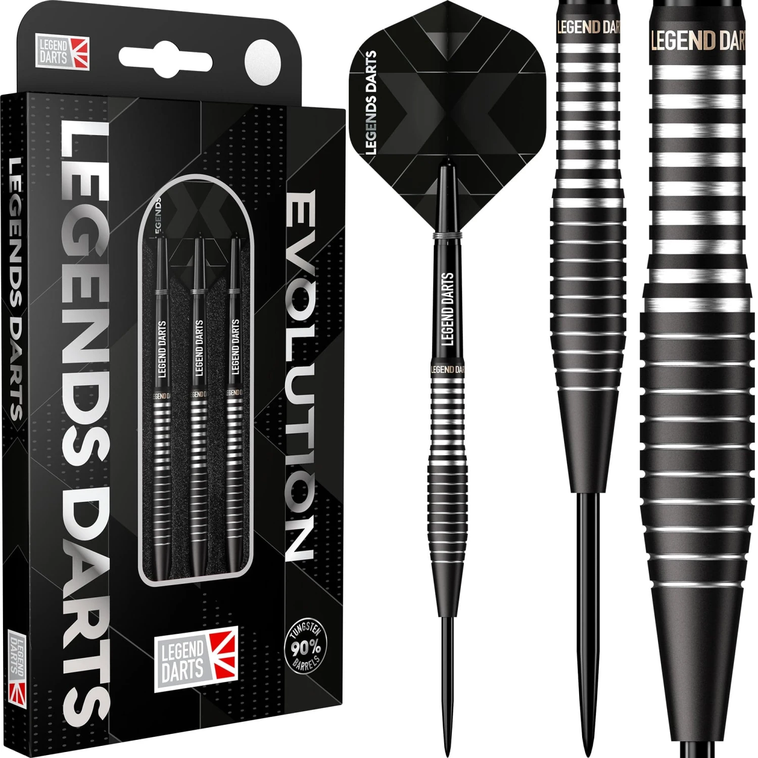 Legend Darts – Steel Tip – Evolution Series – B04 – Black – Torpedo – 24g. This 90% Tungsten barrel from Legend Darts features a black titanium coating with its uniquely created barrel design, and comes complete with a set of Legend Flights and Shafts.