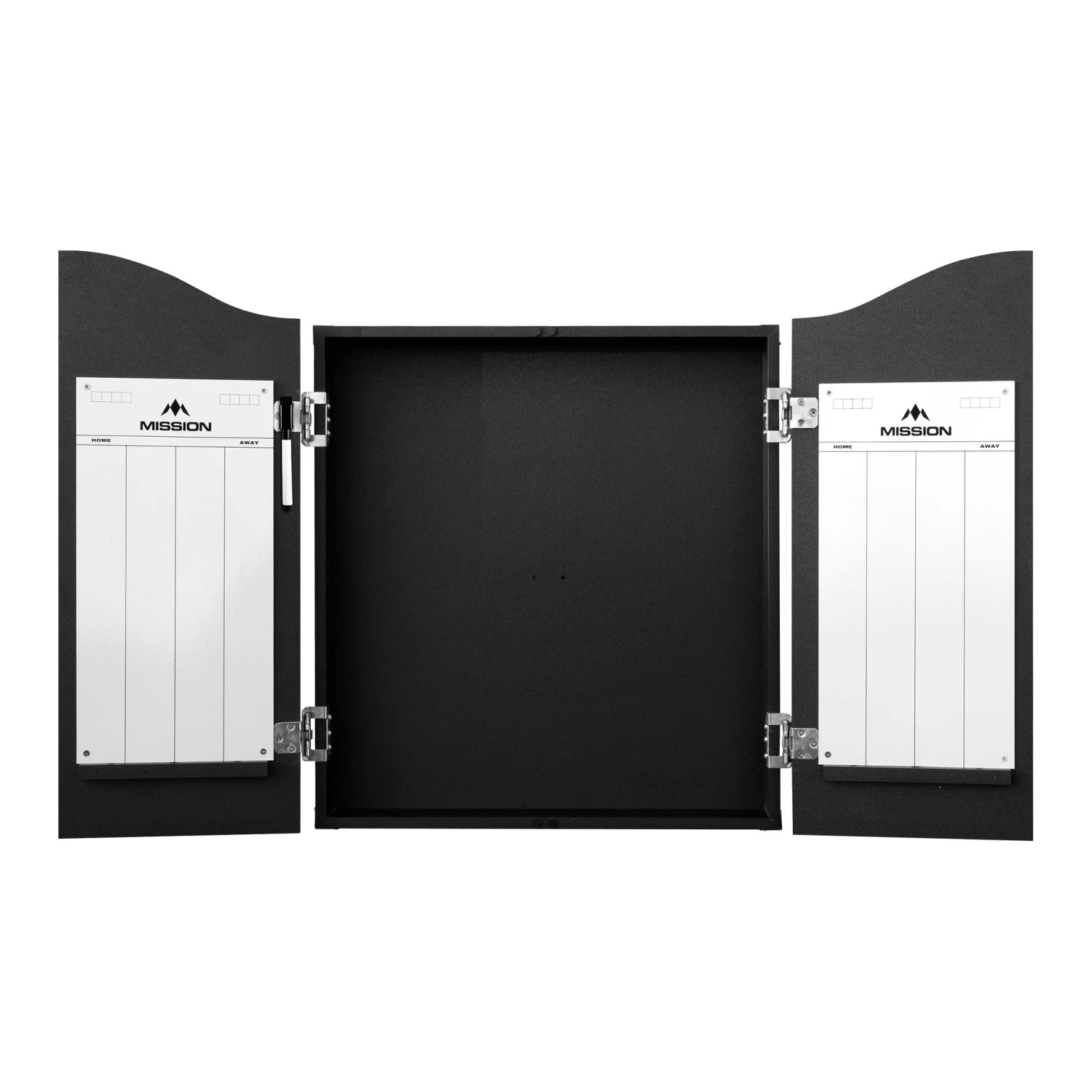 The Mission Home Dart Centre provides everything you need to enjoy darts at home. The centre consists of the Mission Wooden Dartboard Cabinet in either double top or classic plain black design, featuring reinforced corners, premium hinges, and all fixings. Also included is the Mission Apollo Sisal Dartboard with staple free bullseye, 2 sets of brass darts complete with shafts and flights, 2 drywipe scoreboards integrated into the cabinet doors and 1 drywipe marker so you’re ready to play! Mission Home Darts Centre – Plain Black. Features: Mission Apollo Round Wire Dartboard, High quality dartboard cabinet with heavy duty hinges, 2 sided Home and Away easy-wipe scoring panels, 6 Brass Darts, fixings and fitting instructions. Mission Home Darts Centre – Cabinet, Dartboard, 6 Darts – Plain Black