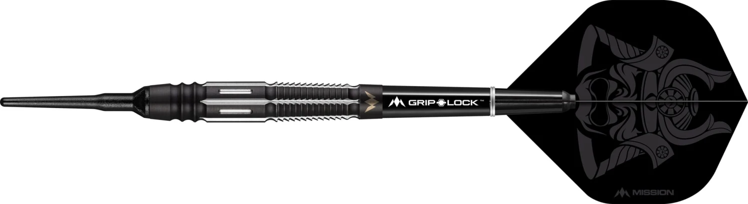 Mission Kuro Soft Tip Tungsten Darts – 95% Tungsten. Features: 95% Tungsten Barrels, 1 Set of Mission Flights, 1 Set of Mission Shafts with S-Lock rings, Point Protector. Barrel Weight of 17.0g, leading to a fully loaded weight of approx 19g. Mission Kuro Darts – Soft Tip – Black- M4 – Rear Taper – 19g-D9177