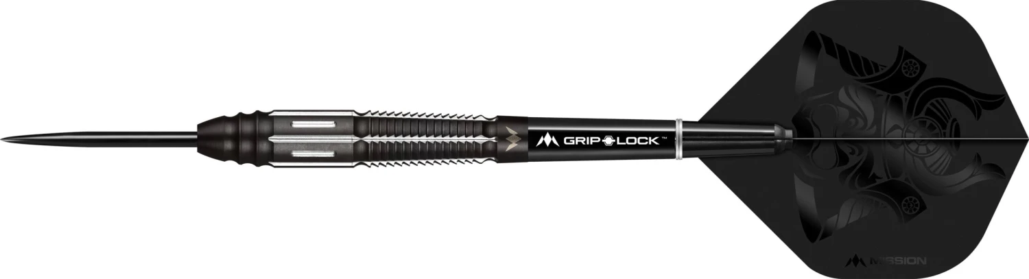 Mission Kuro Steel Tip Tungsten Darts – 95% Tungsten. Features: 95% Tungsten Barrels, 1 Set of Mission Flights, 1 Set of Mission Shafts with S-Lock rings, Point Protector. Mission Kuro Darts – Steel Tip – Black – M4 – Rear Taper – 23g-D5403 Black Coating.