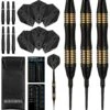 Mission Onza Soft Tip Brass Darts – Twin Machined. Features: Black Coated Brass Barrels, 1 Set of Mission Flights, 1 Set of Mission Shafts with S-Lock rings, Point Protector. Mission Onza Darts – Soft Tip Brass – M1 – Black & Gold – 19g-D9385 Great Value Set
