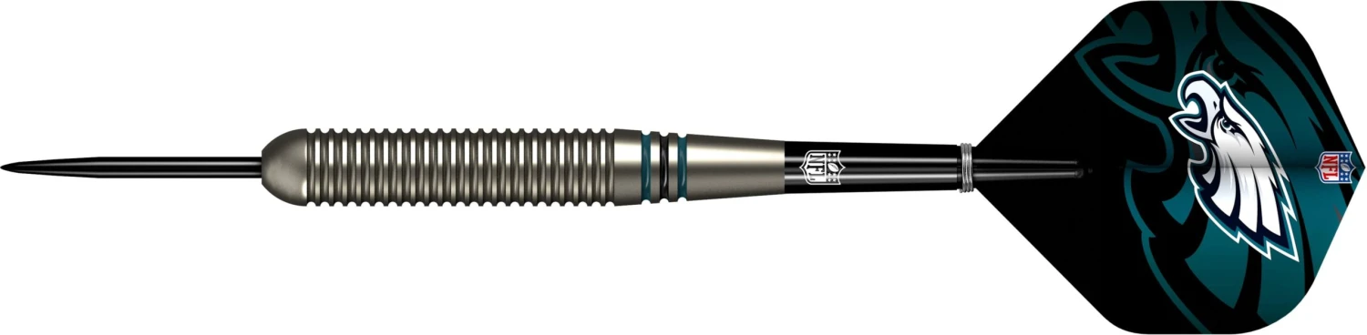 Offically Licensed NFL Steel Tip Darts – Coated Brass. Includes: Coated Brass Barrels, NFL Licensed Flights, 1 Set of Nylon Shafts with rings, Point Protector, Bar Wallet. NFL -Officially Licensed Steel Tip Brass Darts – Official Licensed – Philadelphia Eagles – 22g Steel Tip