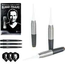Elmar Paulke Team One80 Tungsten Darts. Features: VHD (Very High Density) Tungsten, Matched Weighted, Set of Nylon Shafts, Set of One80 Flights One80 Elmar Paulke Darts – Soft Tip – Signature
