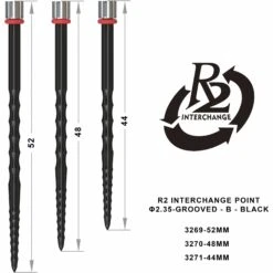One80 R2 Interchange Points (2.35mm) – 52mm – Grooved – B – Black. Each pack contains 3 points for use with R2 Darts,