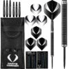 One80 Raise B Steel Tip Tungsten Darts. Features: HD (High Density) Tungsten, Matched Weighted, Set of Nylon Shafts, Set of One80 Flights
