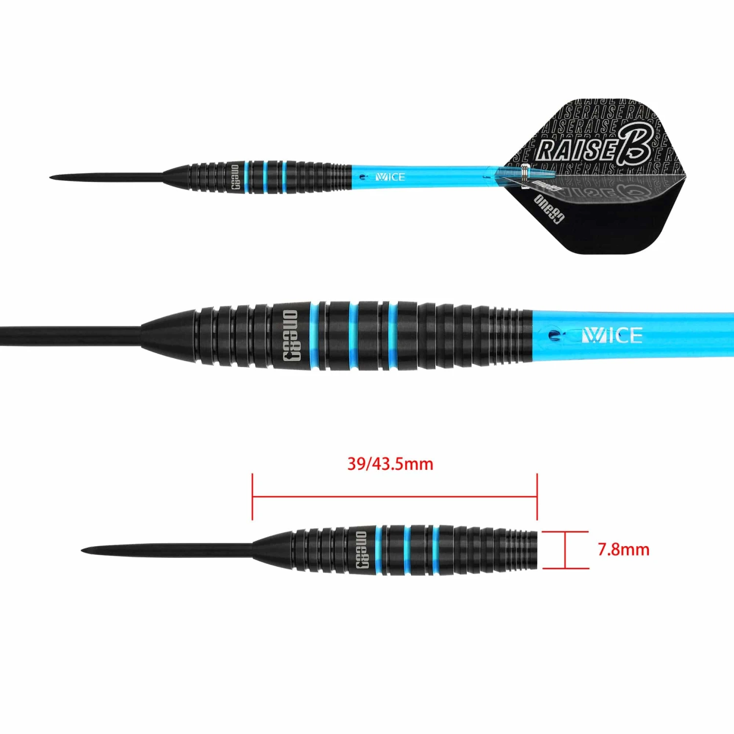 One80 Raise B Darts – Steel Tip – Black – Aqua Blue Rings