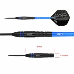 One80 Raise B Steel Tip Tungsten Darts. Features: HD (High Density) Tungsten, Matched Weighted, Set of Nylon Shafts, Set of One80 Flights One80 Raise B Darts – Steel Tip – Black – Blue Rings