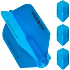 Robson Plus Slim Shape Dart Flights. Made from a moulded plastic, these blue flights simply push onto your normal shaft to give you a solid professional setup. As the flights do not have a specialist fitting, these blue slim flights can be used on most nylon and aluminium shafts. Each pack is provided as one set of 3 flights.