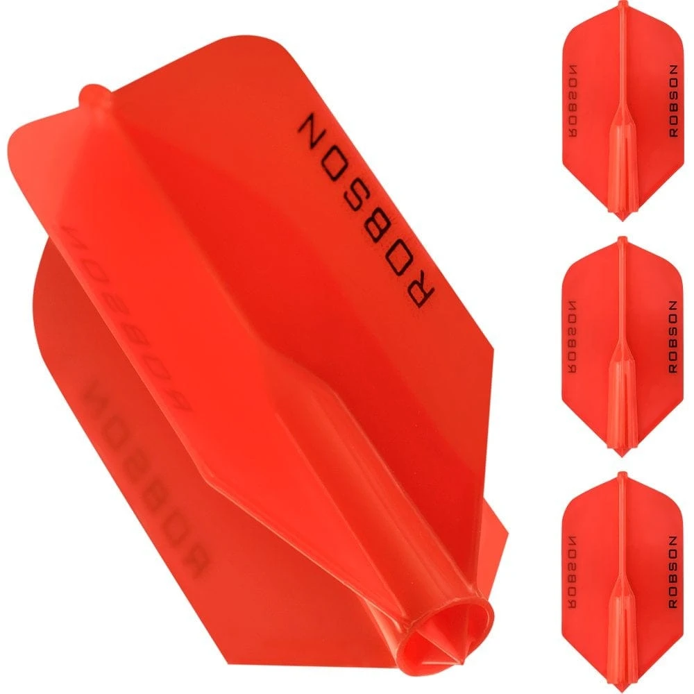 Robson Plus Slim Shape Dart Flights. Made from a moulded plastic, these red flights simply push onto your normal shaft to give you a solid professional setup. As the flights do not have a specialist fitting, these red slim flights can be used on most nylon and aluminium shafts. Each pack is provided as one set of 3 flights.