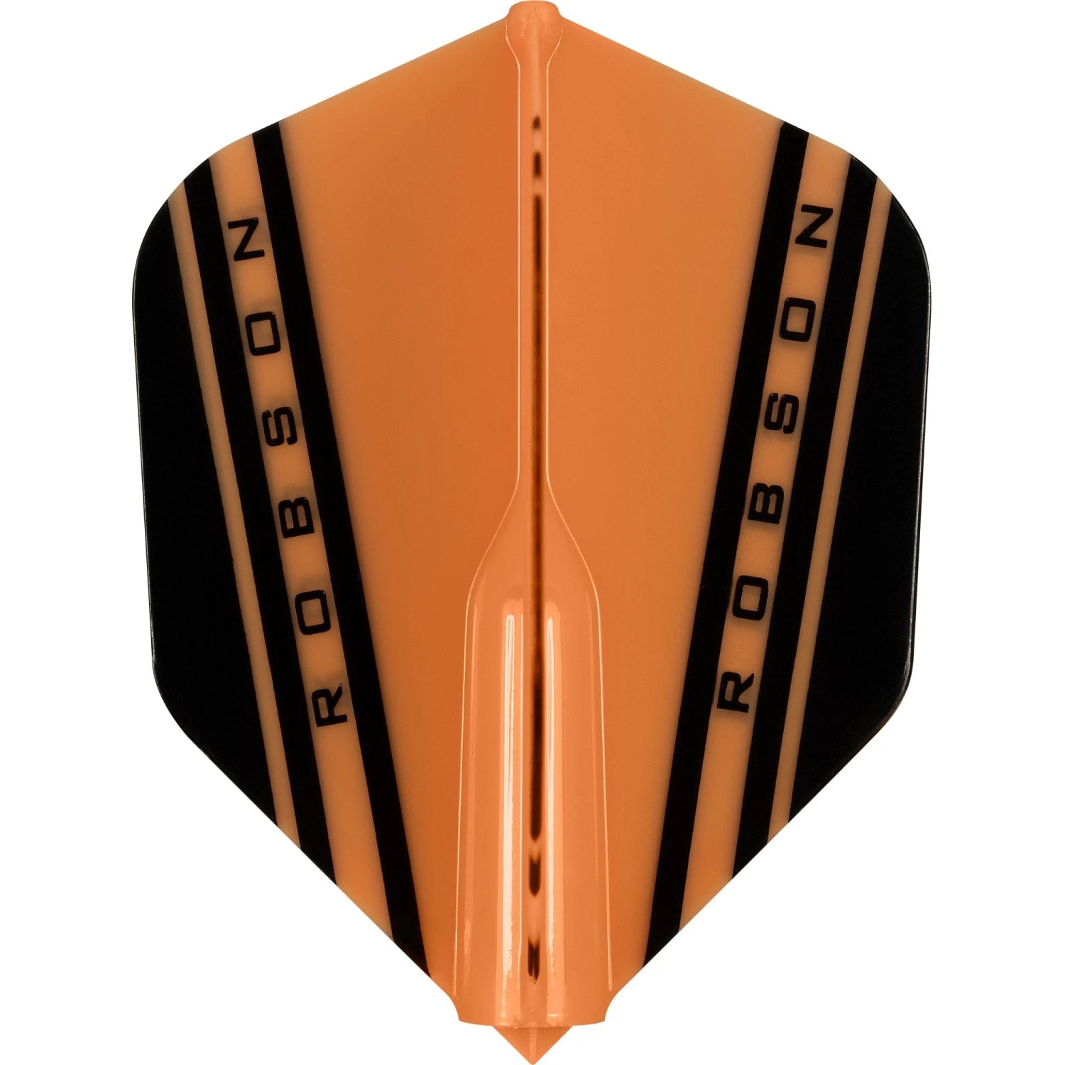 Robson Plus Small Standard Shape Dart Flights with V design. Made from a moulded plastic, these orange flights simply push onto your normal shaft to give you a solid professional setup. As the flights do not have a specialist fitting, these orange flights can be used on most nylon and aluminium shafts. Each pack is provided as one set of 3 flights.