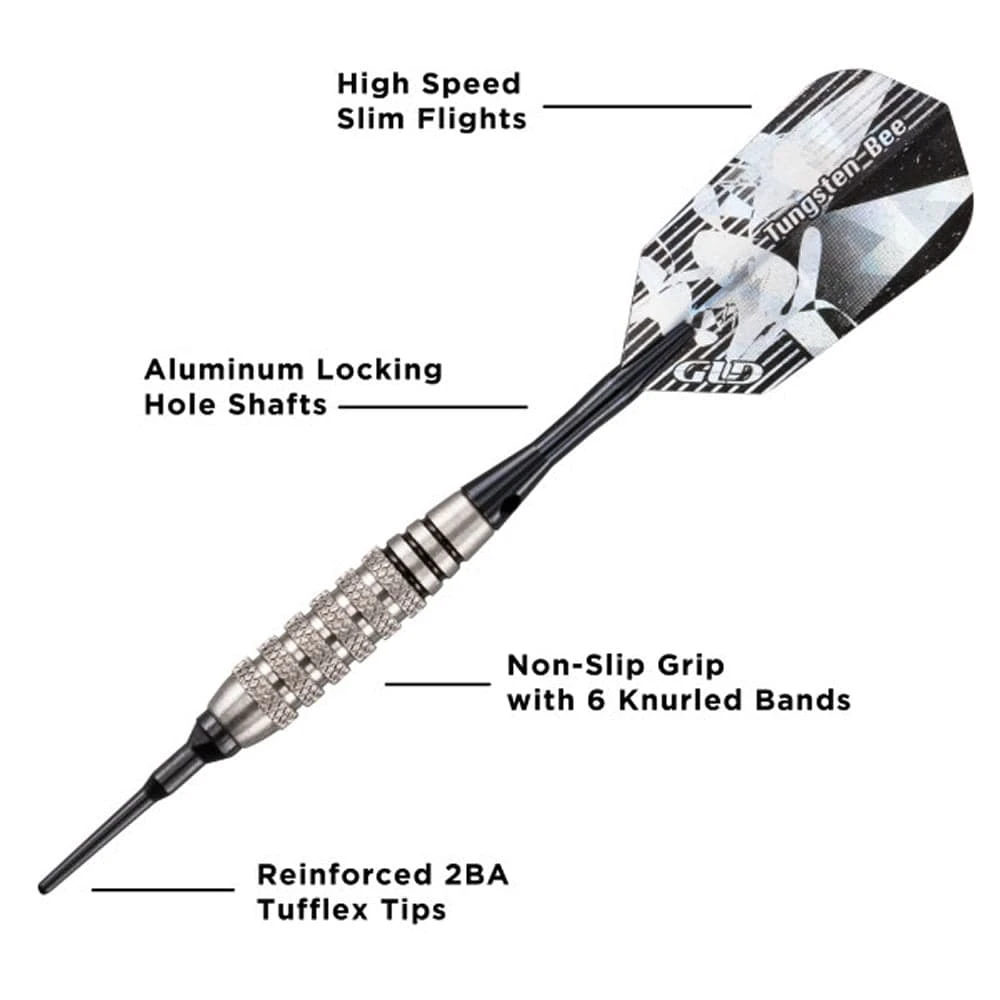 Viper Tungsten Bee Darts – Soft Tip – 80% – Knurled Rings – inc Extras – Natural – 18g. Great things come in small packages with the Viper Tungsten Bee soft tip darts, designed for use with either electronic dartboards or most sisal dartboards. These diminutive darts are packed with features starting with the barrel and are fashioned from 80% tungsten. Includes Super Bee dart case.