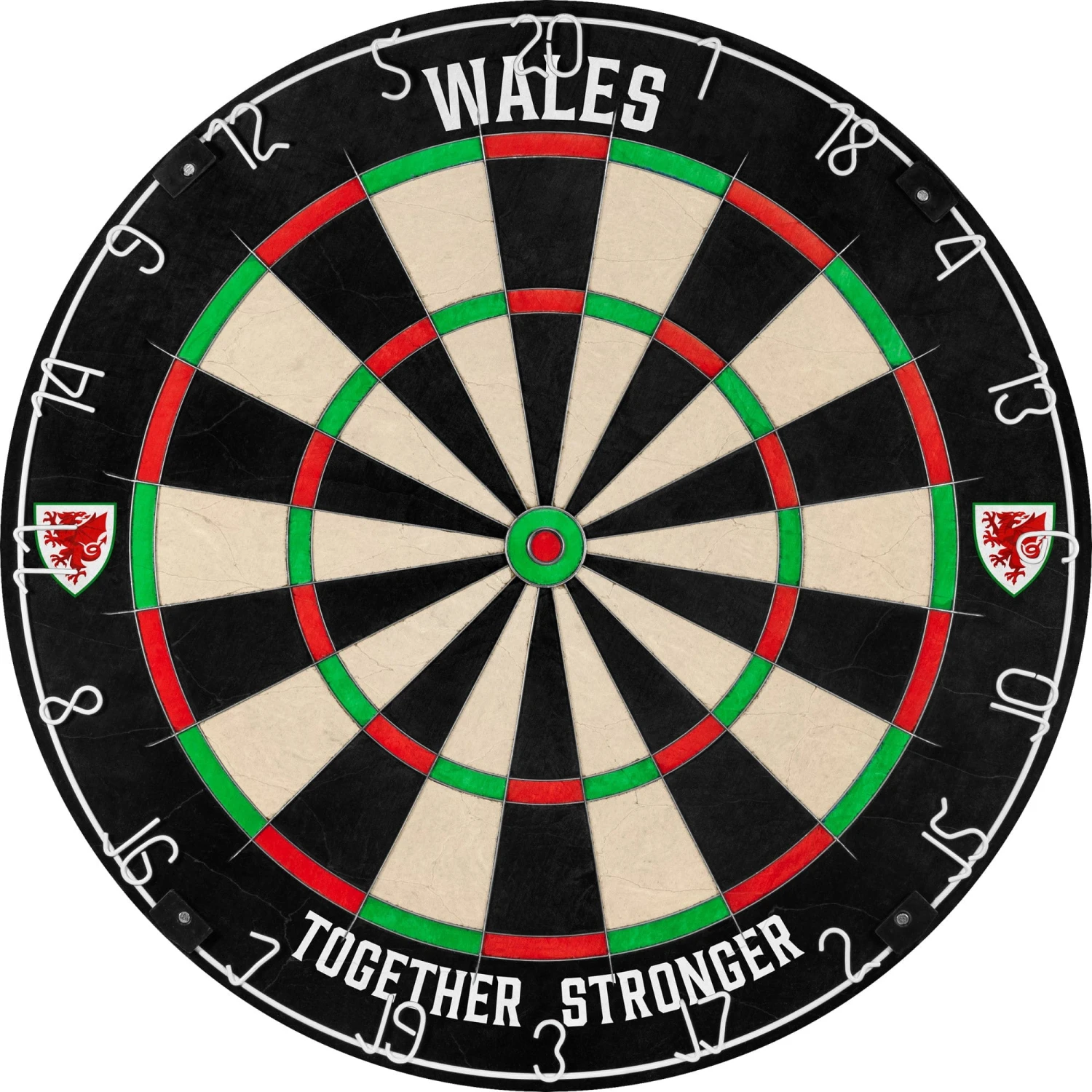 Wales FA Professional Dartboard is a competition standard top-quality dartboard with an ultra-thin wire construction. The sharp angle of the ultra-thin wires enables darts to glance over them and into the scoring areas, resulting in less bounce outs and damage to the darts. This Wales FA dartboard is manufactured from high-quality African sisal and features a staple-free construction and vibrant non-fade colours. Wales FA – Dartboard – Professional Level – Official Licensed – Crest Logo – Wales